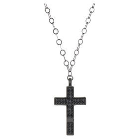 Collana croce pendente zirconi neri argento finitura rutenio Benedictus