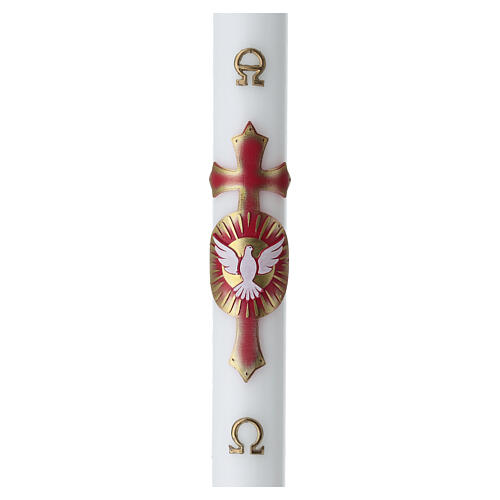 Cero pasquale 120x8 cm in cera bianca con simbolo Spirito Santo.