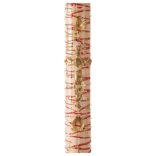 Cero Pasquale bianco Alfa e Omega croce gocce dorate 120x8 cm