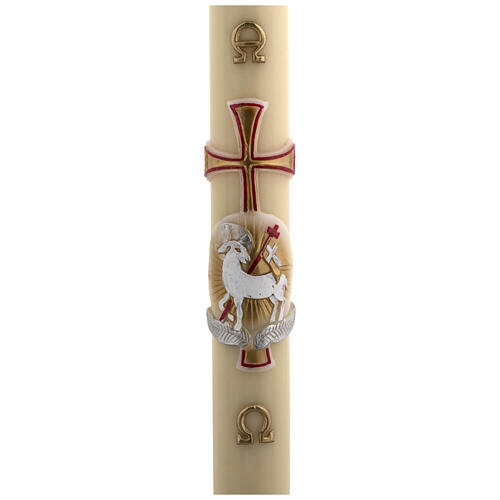 Cero pasquale cera d'api RINFORZO agnello oro e rosso croce 8x120 cm