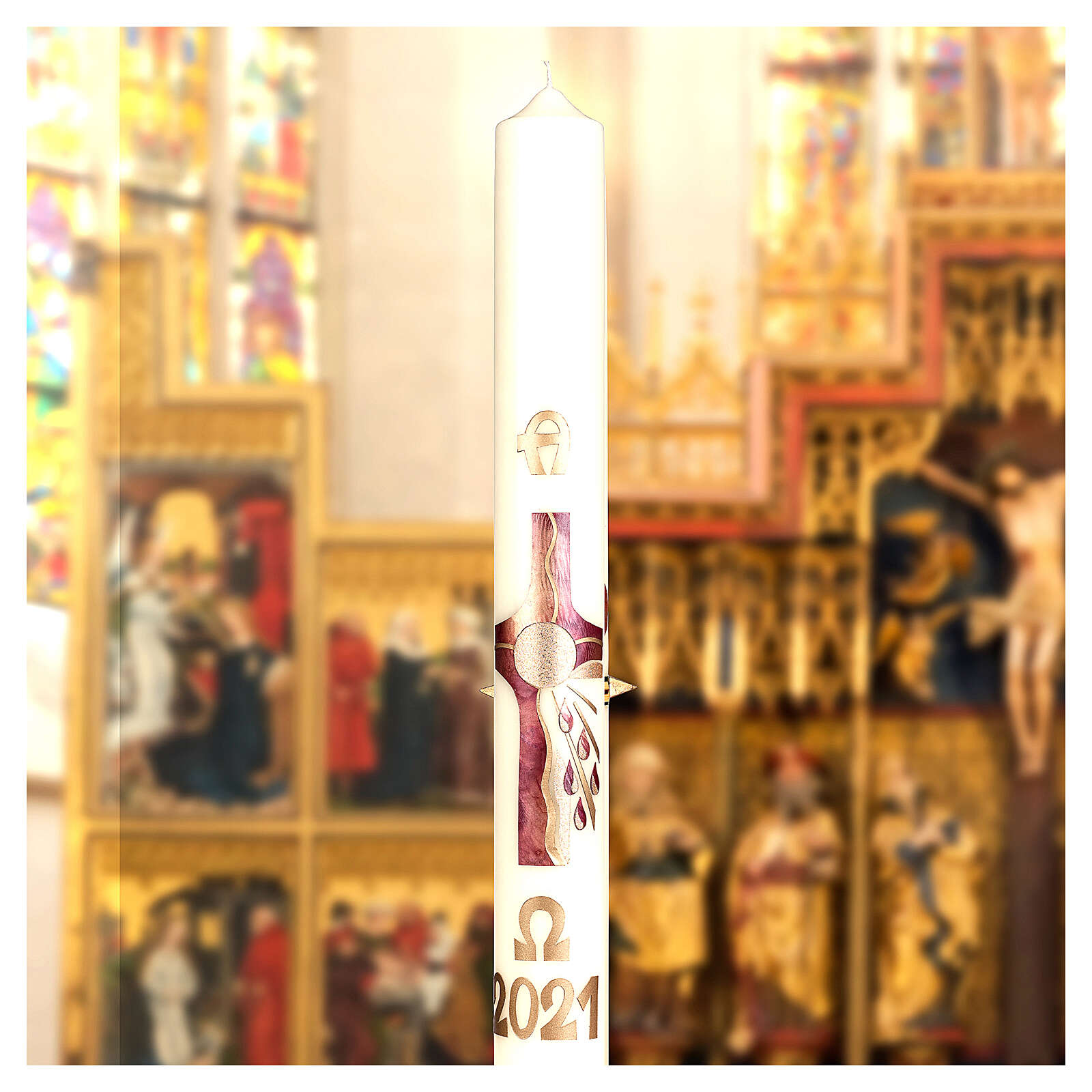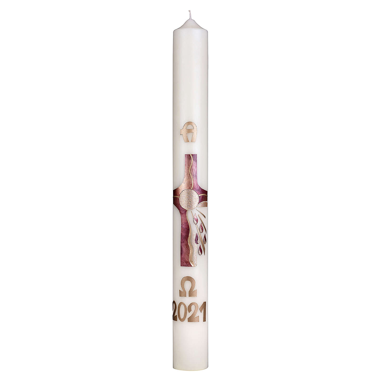 Cero pasquale in paraffina e cera d'api, realizzato con cura in Germania da artigiani che lo decorano a mano.