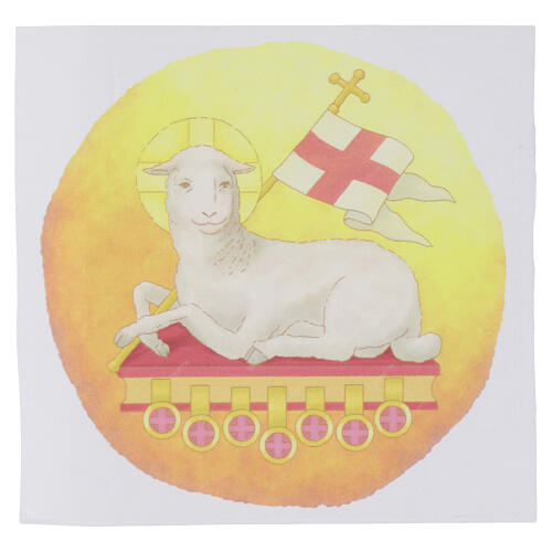 Rappresenta l'agnello risorto glorioso, misura di altezza 15 cm.