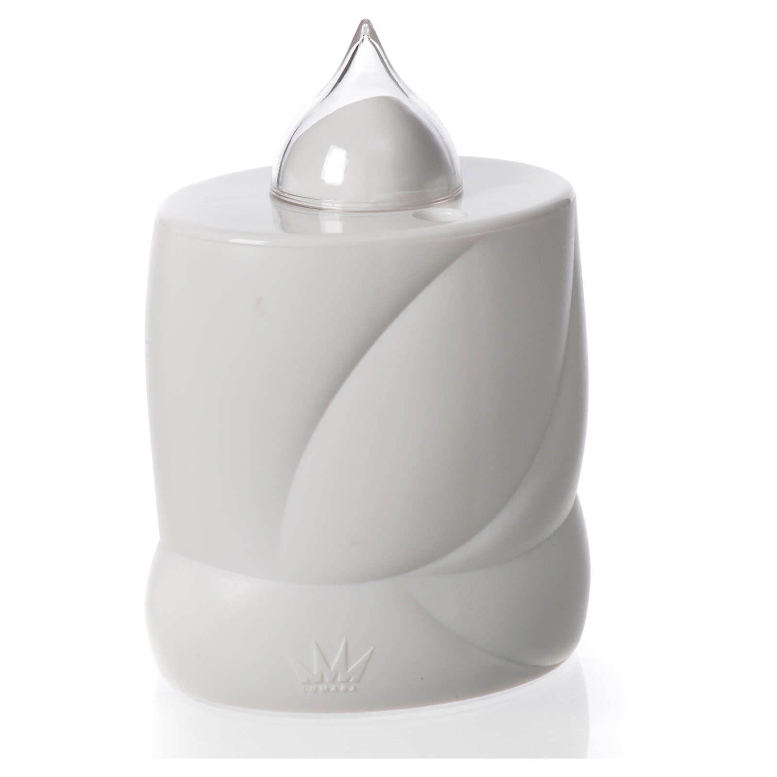 Candela elettrica Lumada bianca con croce, luce gialla reale tremula.