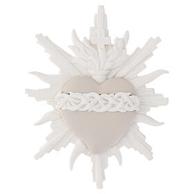 Cuore sacro da parete 15x15 cm resina raggi bianchi e corona intrecciata